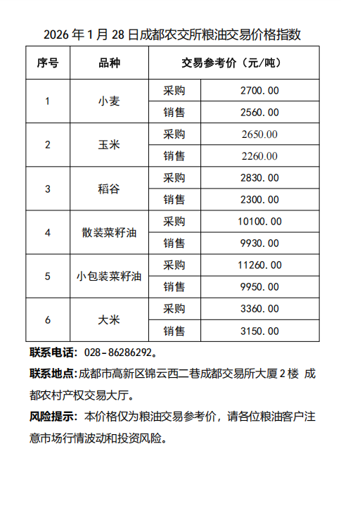 2026年1月28日成都农交所粮油交易价格指数