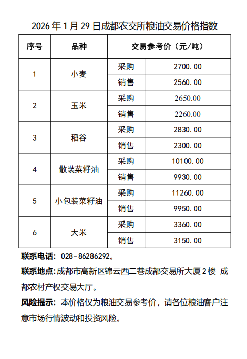 2026年1月29日成都农交所粮油交易价格指数