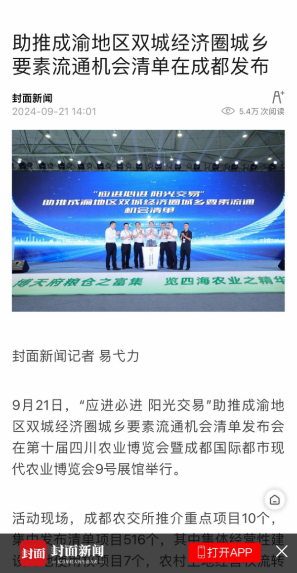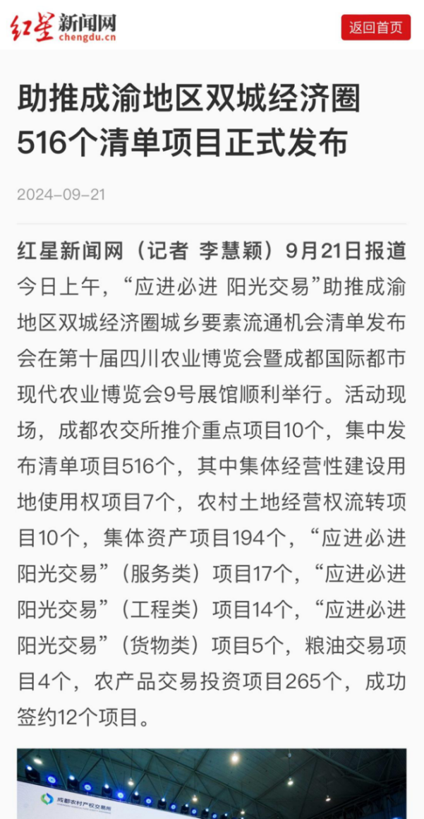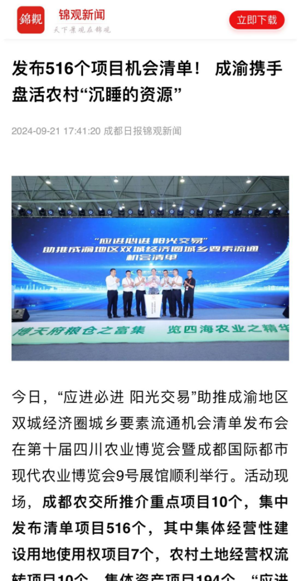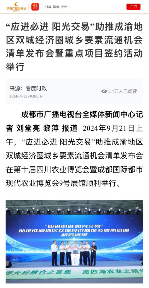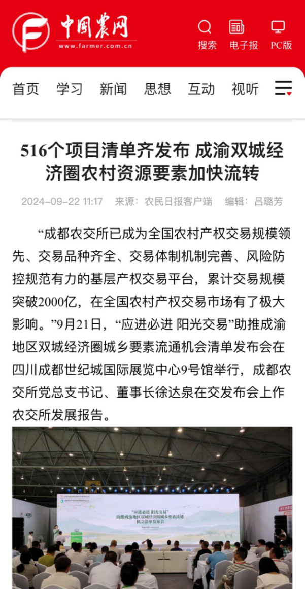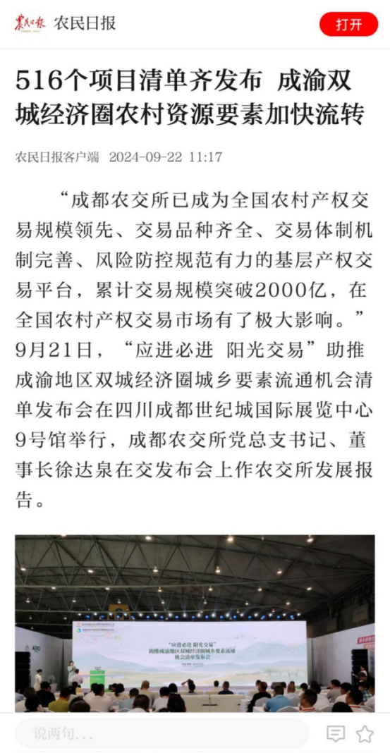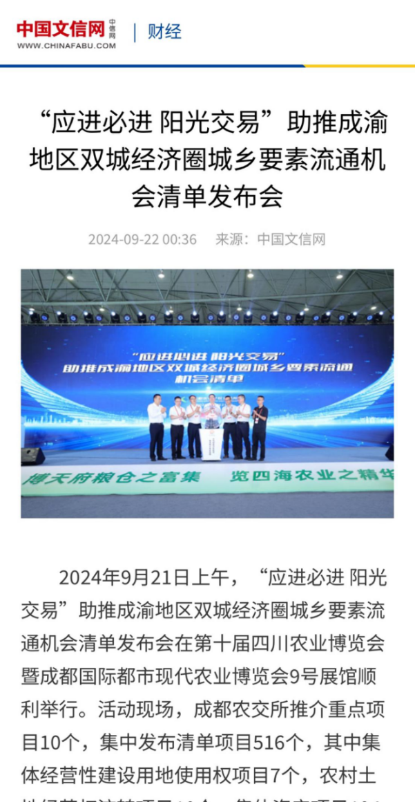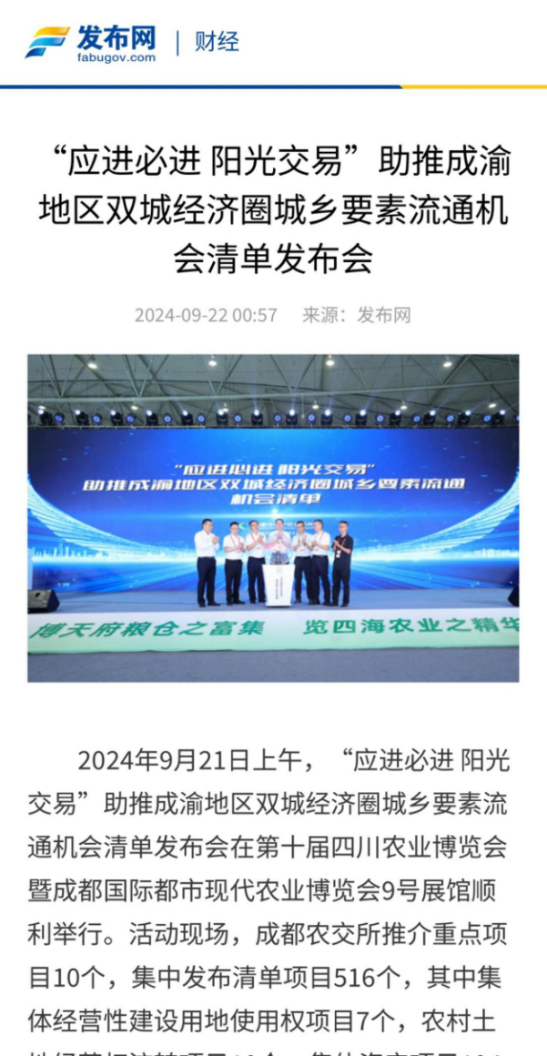 《农民日报》等多家权威媒体报道“应进必进 阳光交易”助推成渝地区双城经济圈城乡要素流通机会清单发布会