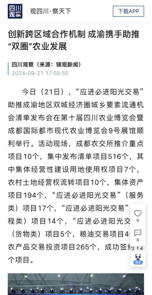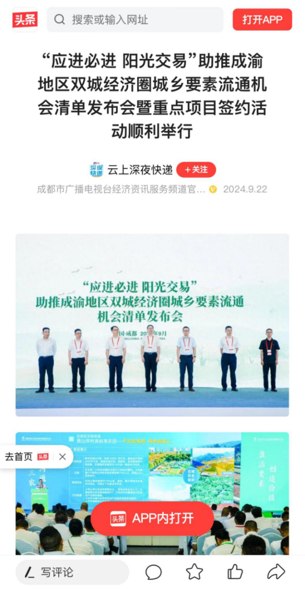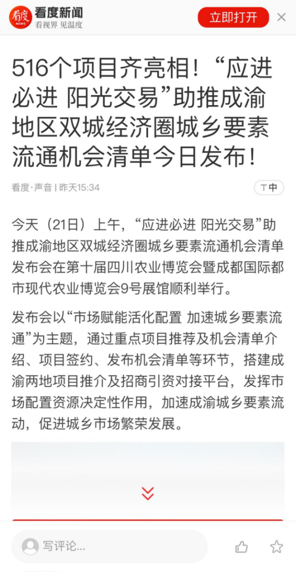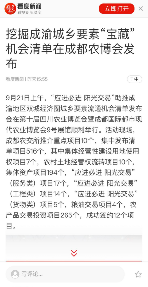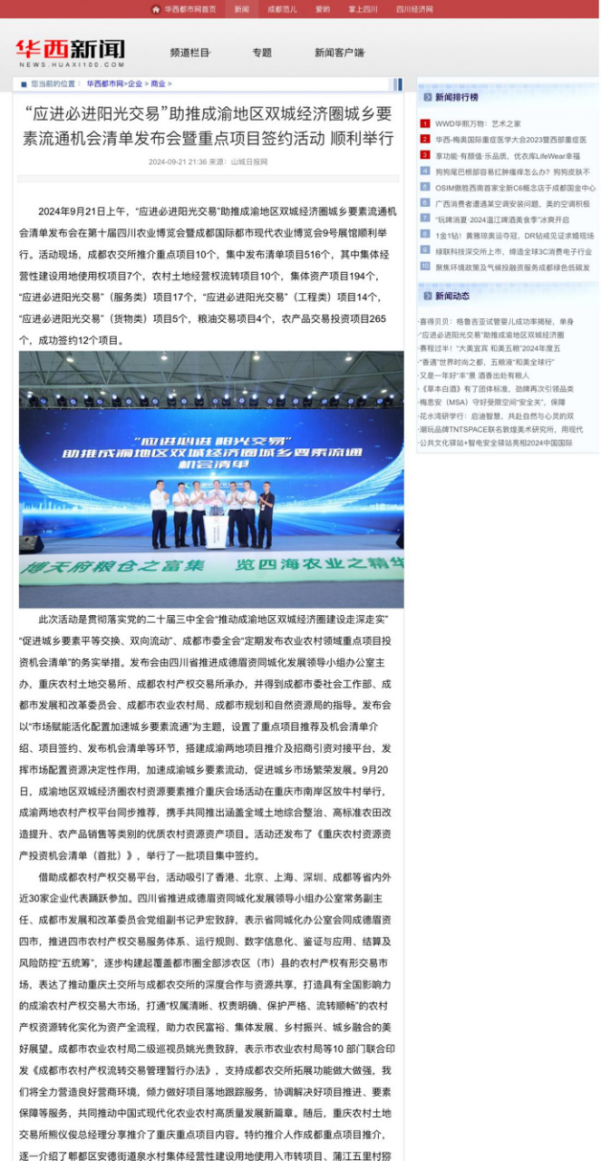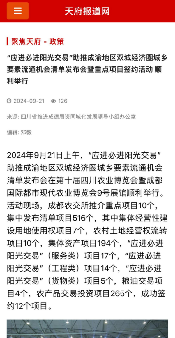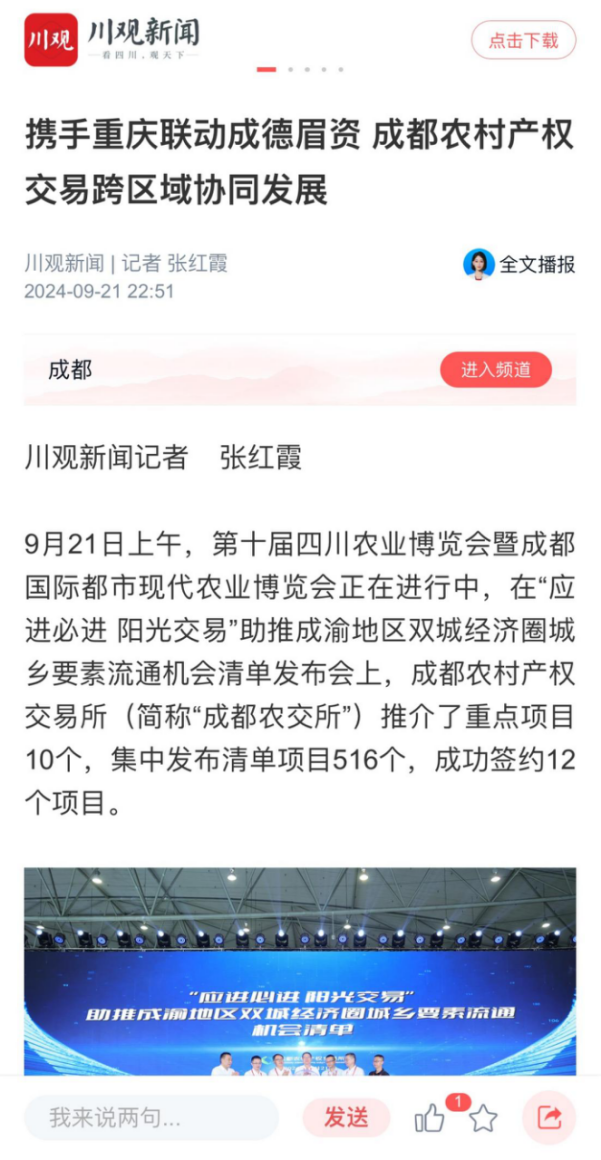 《农民日报》等多家权威媒体报道“应进必进 阳光交易”助推成渝地区双城经济圈城乡要素流通机会清单发布会