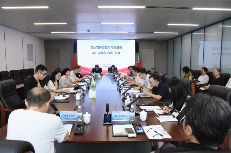 2025年10月9日,农业农村部政策与改革司产权交易处一级调研员刘春明带队到成都交所调研。中国农业科学院农业经济与发展研究所研究员孔繁涛、农业信息研究所副研究员曹姗姗等参加调研,省农业农村厅农村改革处处长潘化成、成都市农业农村局副局长王胜等陪同调研。市农业农村局合作经济指导处、改革处、农经站,市规划和自然资源局、水务局、公园城市局、教育局、成都农交所有关负责同志参加调研座谈。